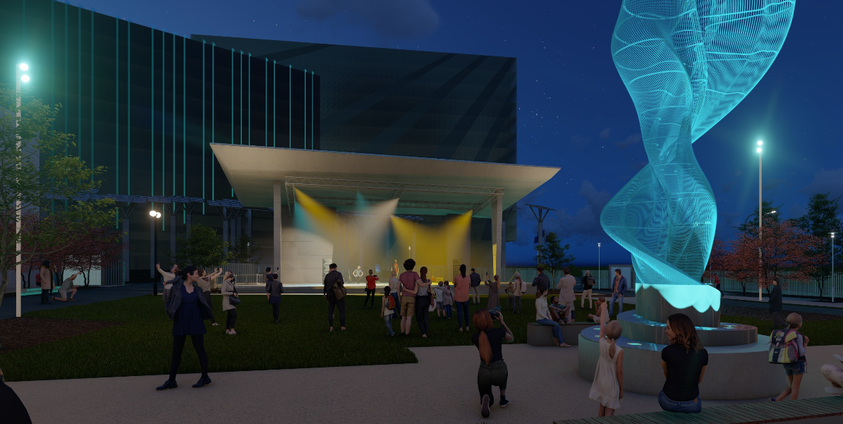 Rising at the heart of the plaza, the sculpture’s transparent, layered form shifts with the daylight and comes alive at night through programmed LED lighting, offering a dynamic reflection of […]